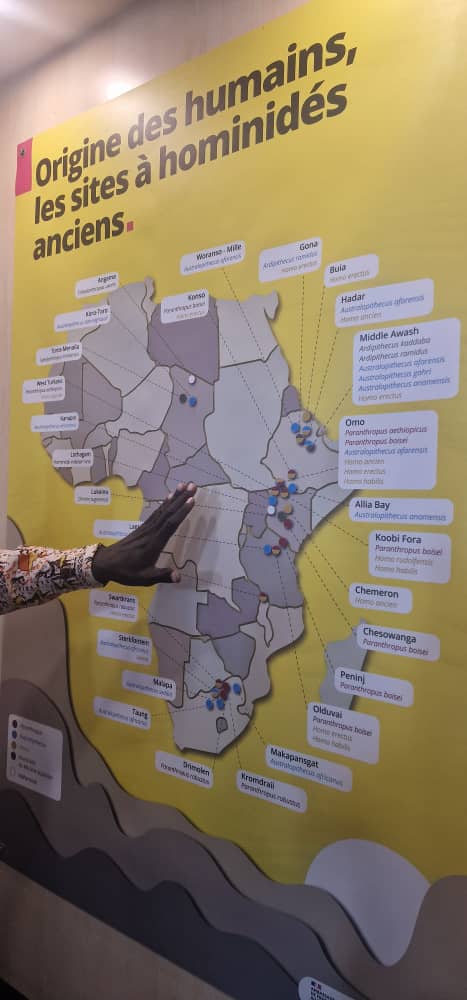 Le Musée du Tchad créé en 1964 dans un autre local se retrouve aujourd’hui dans un bâtiment imposant dans le quartier Amriguébé depuis 2010. L’intérieur possède trois étages d’expositions permanentes et temporaires. Une équipe de guide expérimenté et enthousiaste ont dirigé la visite à travers les expositions et ont donné des explications autour de chaque objet ou photo exposé. La visite a commencé avec la salle dédiée aux découvertes qui font du Tchad le berceau de l’humanité. La découverte du fossile de Sahelanthropus tchadensis la plus ancienne représentation de l’être humain. Jusqu’à nos jours, dans le monde scientifique, on peut donc dire que le territoire Tchadien a vu naitre l’origine de l’homme. Le fossile découvert en 2001 a Toros-Menalla (Désert du Djurab) dénommé Toumaï qui veut dire Espoir de vie en langue Gourane est âgée de 7 millions d’années. À coter de Toumaï, on y trouve aussi d’autres fossiles d’animaux qui vécurent il y a des milliers d’années.
