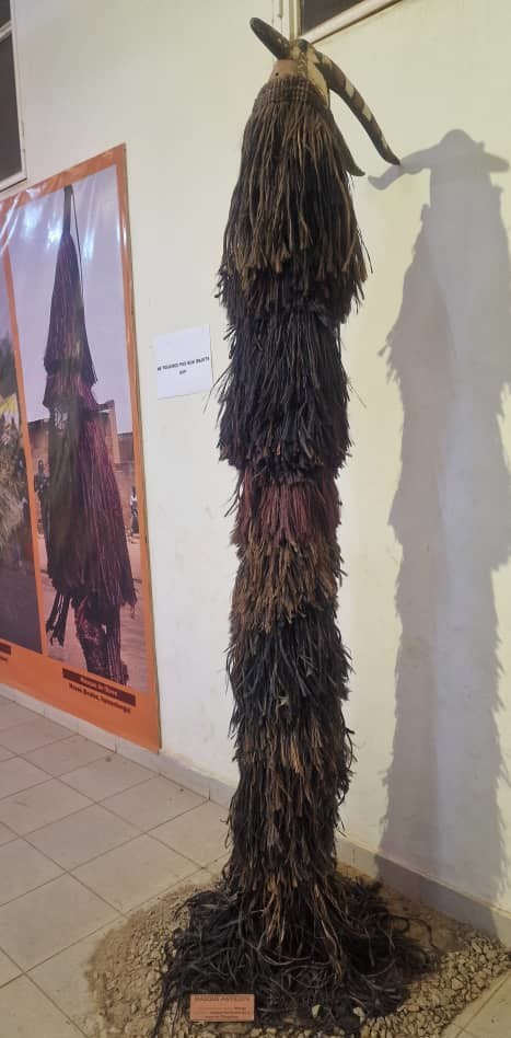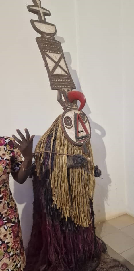 The world of masks is linked with the concept of initiation rites. Only those who have successfully completed such rites can create a mask or even wear one during ceremonies. It is a carefully guarded cultural space reserved for a select few. Masks also have a spiritual function as they are integral to rituals. It can symbolize supernatural forces and participate in incantations and sacrifices, for example, when pleading the gods for a cause in society. One of the masks in the exhibition had different signs representing Islam, Christianity, and Animism. That mask represents the unity of these religions and promotes religious cohabitation in societies.