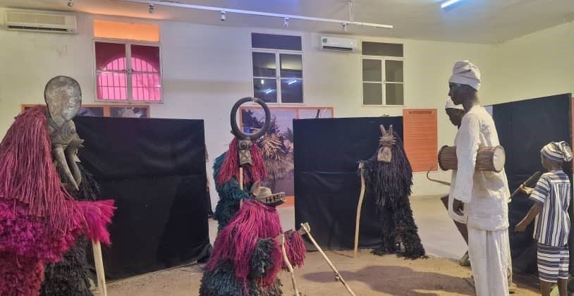 The world of masks is linked with the concept of initiation rites. Only those who have successfully completed such rites can create a mask or even wear one during ceremonies. It is a carefully guarded cultural space reserved for a select few. Masks also have a spiritual function as they are integral to rituals. It can symbolize supernatural forces and participate in incantations and sacrifices, for example, when pleading the gods for a cause in society. One of the masks in the exhibition had different signs representing Islam, Christianity, and Animism. That mask represents the unity of these religions and promotes religious cohabitation in societies.