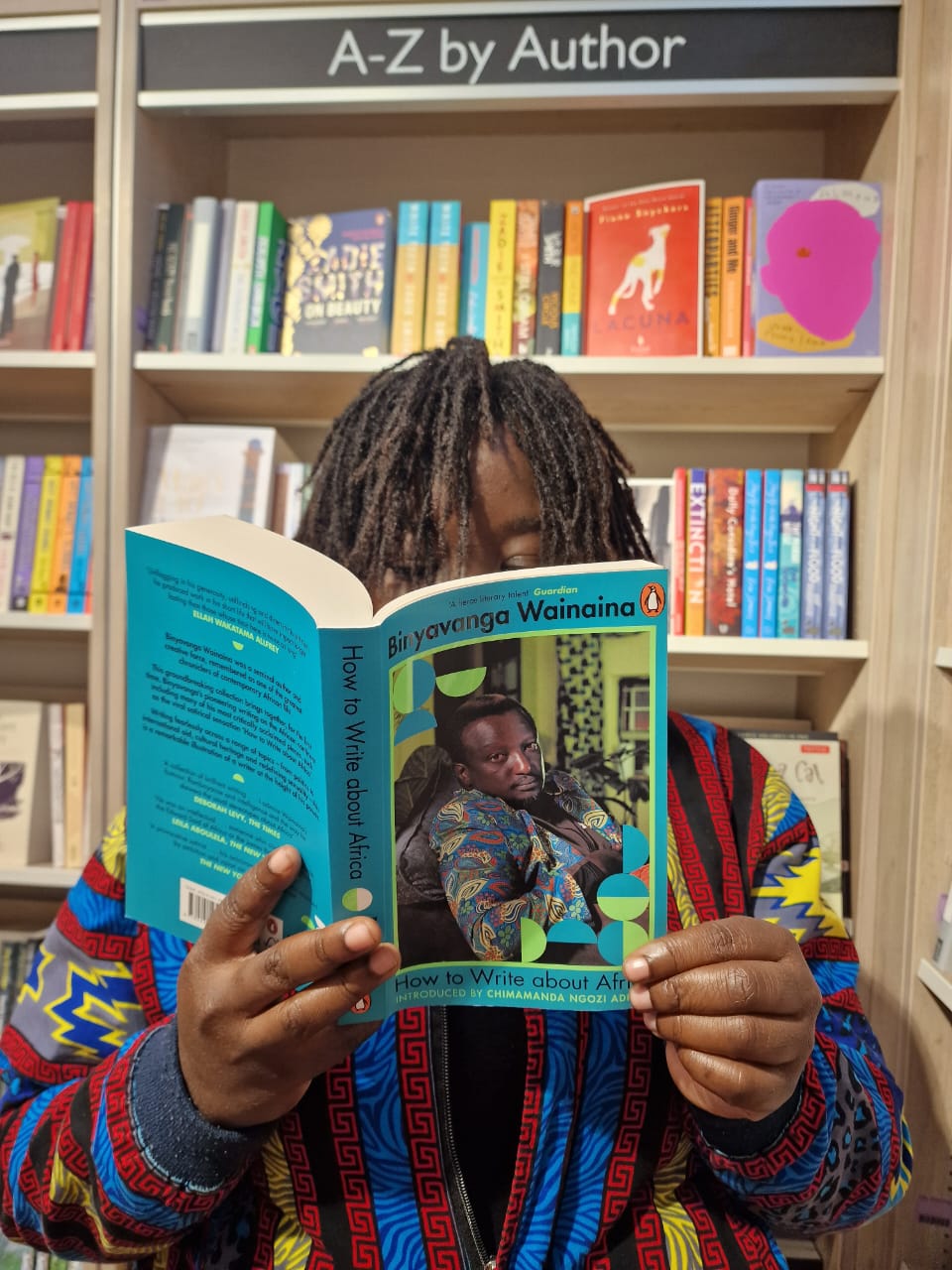 The afternoon was full of literary discovery though poetry books, Ruwyadah’s favorite, and African literature, my favorite. We were about to leave when a emerald-green book cover with a picture of a man caught my eye on a table display. I picked up How to Write About Africa by Biyanvanga Wainaina, an acclaimed contemporary writer from Kenya. The title alone resonated with me and the brand I started working on for the past two years, so I purchased it without a second thought.